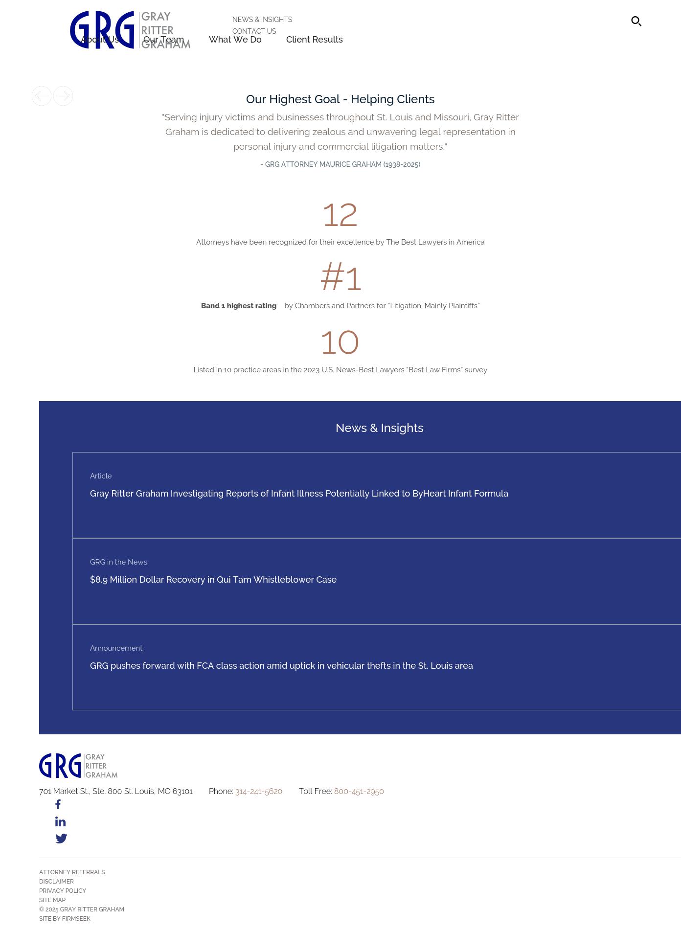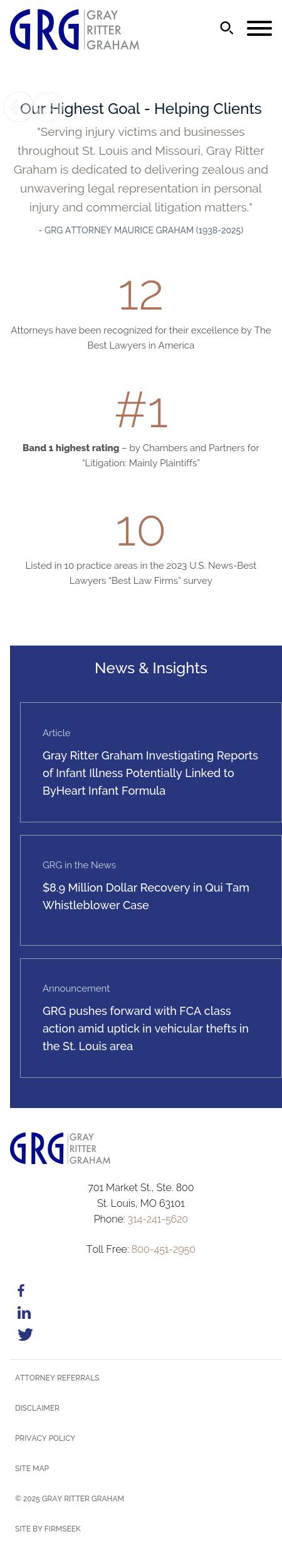 Gray, Ritter & Graham, P.C. St. Louis Personal Injury Attorney | Missouri Wrongful Death Lawyer | Commercial Litigation Law Firm Our personal injury and commercial litigation attorneys have been serving clients since 1946. Call Gray, Ritter & Graham, P.C., at 314-732-0728.