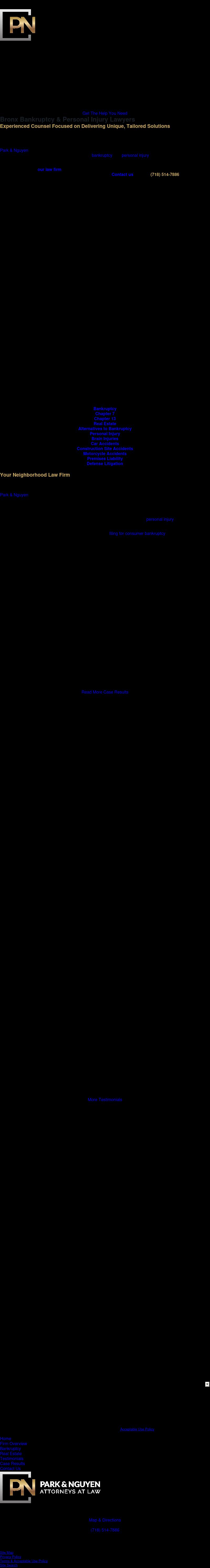 Park & Nguyen Bronx Bankruptcy Attorney | Brooklyn Personal Injury Lawyer We handle bankruptcy, personal injury, divorce and real estate matters in New York and New Jersey. Call 718-414-6187 for an initial consultation.