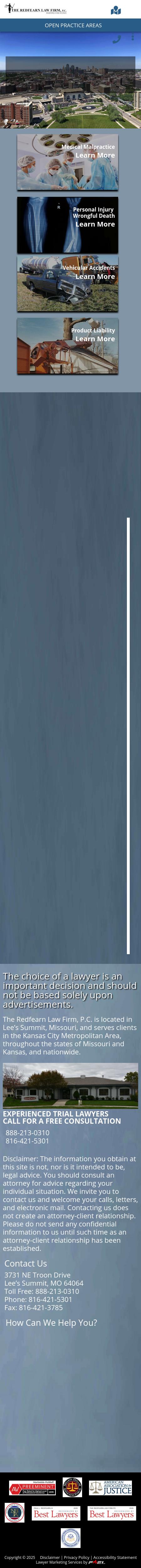 The Redfearn Law Firm, P.C. Kansas City Personal Injury Attorneys | Missouri Accident Lawyer | Independence Wrongful Death Kansas City personal injury lawyers at The Redfearn Law Firm, P.C., have been helping clients recover fair compensation since 1984. Call 888-894-8245.